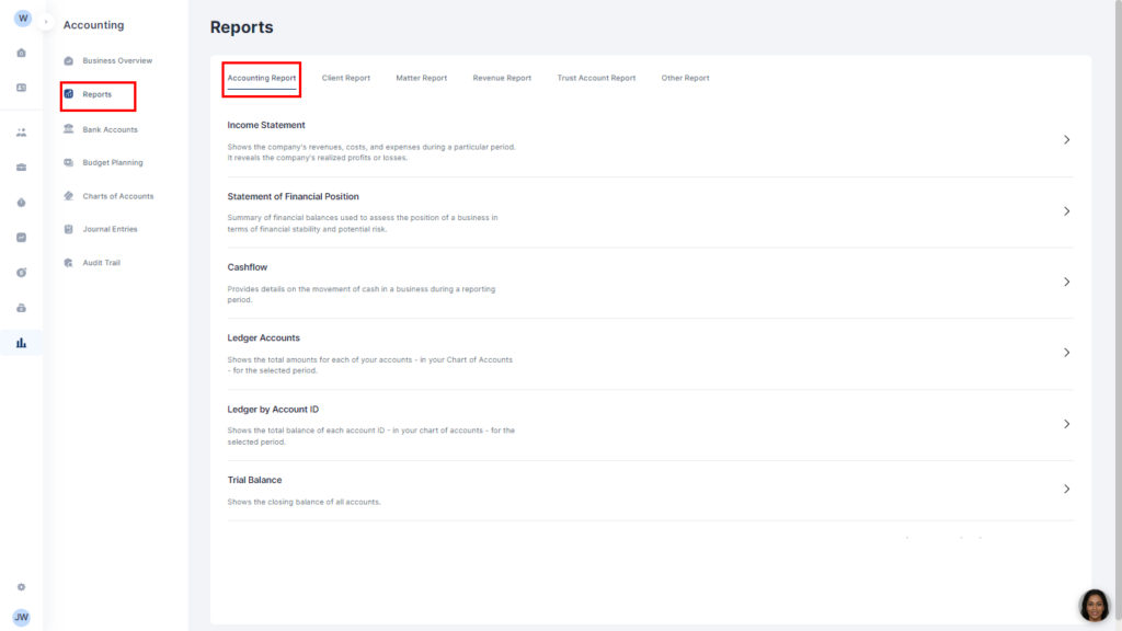 Ledger Accounts: This shows the total amounts for each of your accounts – in your Chart of Accounts – for the selected period.