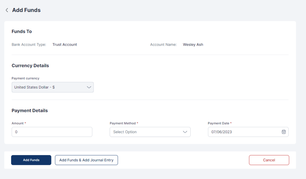 - Click Add Funds or Add Funds & Add Journal Entry