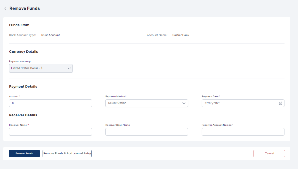 - Click Remove Funds or Remove Funds & Add Journal Entry