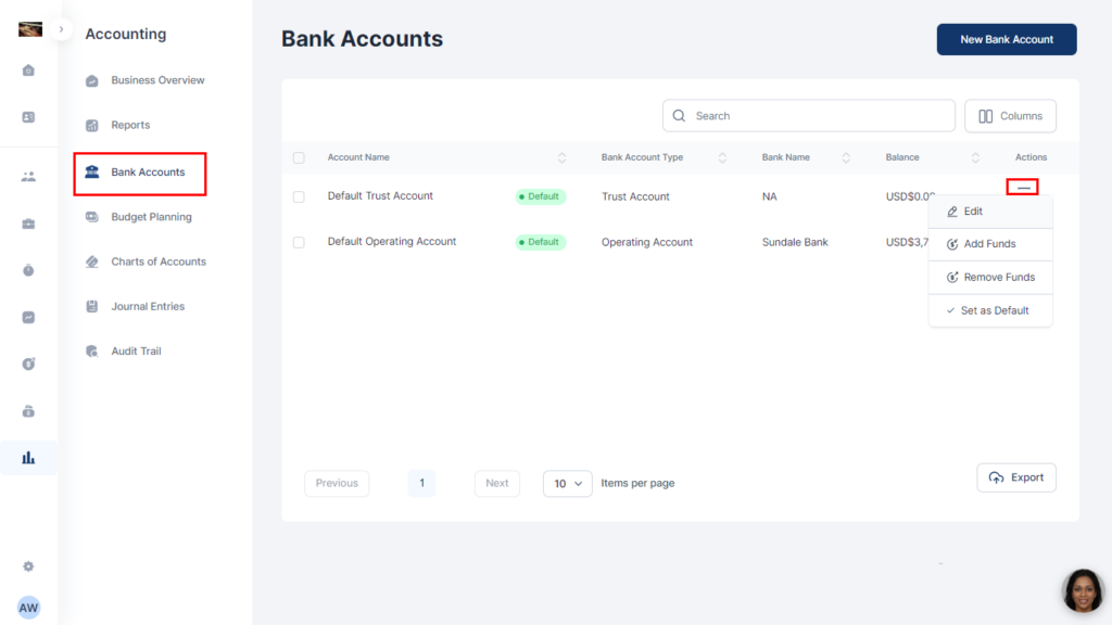 - Select Bank Accounts