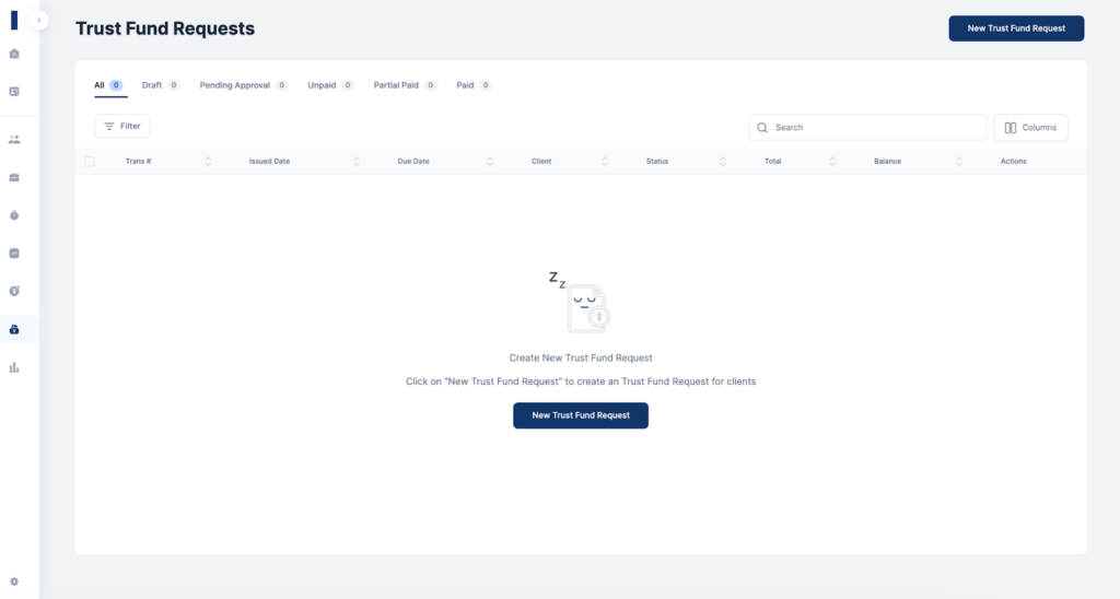 - Click on New Trust Fund Request