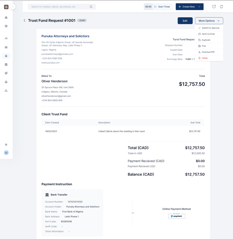 - Click on the Trust Request you want to submit for approval from Trust Request list