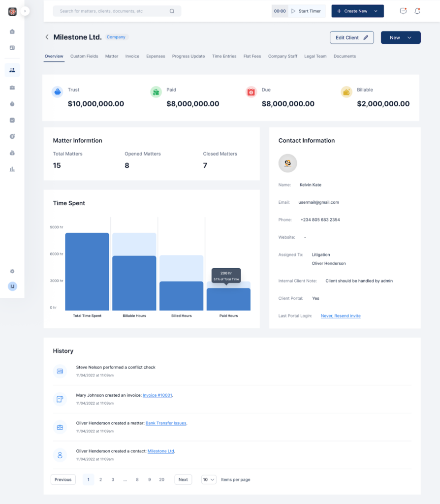 - There, you can view the total time spent, total billable hours, total billed hours, and total paid hours.