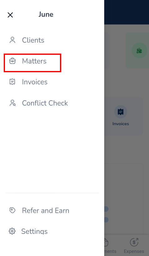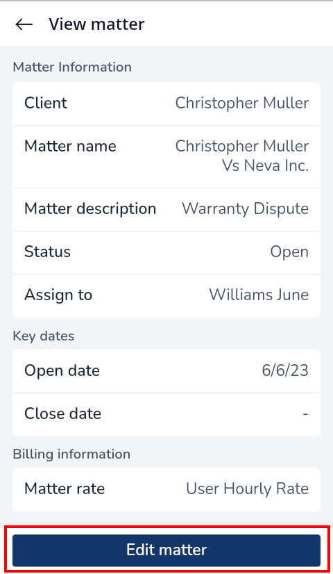 - Select Edit Matter