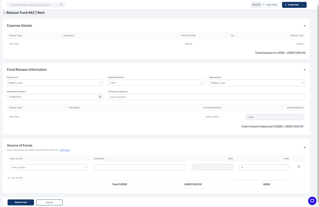 - Fill in the relevant information under the Fund Release information and the Source of Funds sections